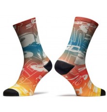 Calzini ideati per un’attività esigente sulla bicicletta, i fili impiegati in diverse direzioni nella costruzione rendono adeguata la traspirabilità del piede. L’arco plantare include un rinforzo speciale che evita gli sfregamenti e il tallone...