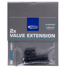 Prolunga valvola 30 mm, Set da due pezzi, alluminio Per valvole Sclaverand con inserto intercambiabile Peso: 7 grammi Marca: Schwalbe Configurazione: 30mm, con filettatura, compatibile con Tubeless Contenuto: Prolunga per valvola (set da 2...