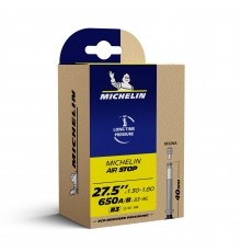 Michelin Air Stop, il best seller delle camere d'aria Michelin. Efficace tenuta di pressione grazie al butile. Resistenza: migliore protezione contro le forature. 26/27.5-B3 VALVOLA REGINA 40MM 26x1 3/8-27.5x1.30/1.8