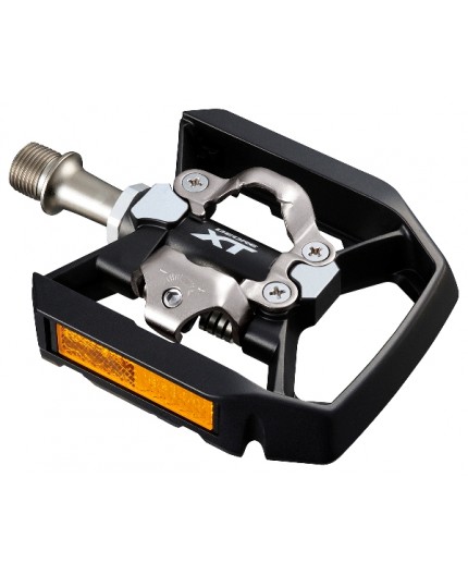 • Corpo in alluminio nero • Perno in metallo su cuscinetti DU • Dimensioni: 80 x 100 mm • Peso: 310 gr. (coppia) • Con BS reflector Specifiche tecniche: Utilizzo: MTB Power Meter: No Tipologia Pedali: Flat Tipologia tacchette: Senza tacchette