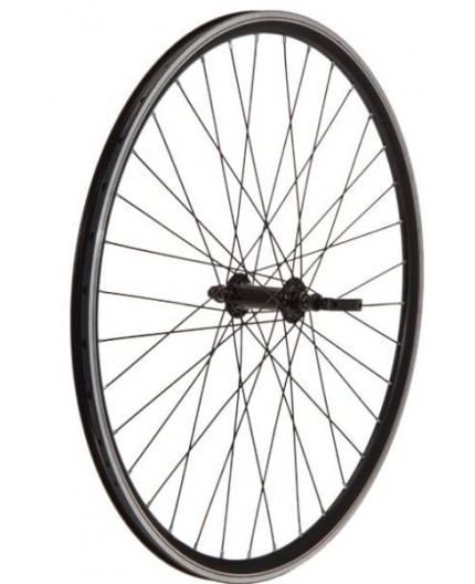 Ruota 28 City-Bike anteriore Cerchio 36 fori nero - Tornito - Raggi tondi neri Cerchio: Larghezza 22 mm x h 23 mm Mozzi: Su cuscinetti