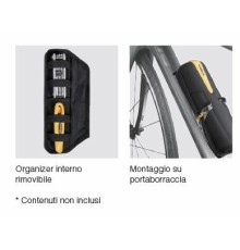 Borsetta sottosellaTaglia MDimensioni: 13 x 7,5 x 4,5 cmTessuto: poliestereIdrorepellenteTaglia LDimensioni: 14 x 9 x 5 cmTessuto: poliestereIdrorepellenteTaglia SDimensioni: 11,5 x 6,5 x 4 cmTessuto: poliestereIdrorepellente