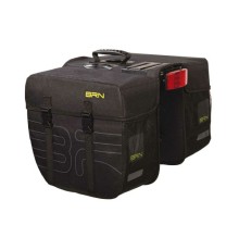 Borse BRN Viaggio Maxi nere posteriori a bisaccia in cordura. La loro capienza totale è di 32 L, le dimensioni 34 x 17 x 30 cm e sono arricchite con bande e loghi riflettenti per donare maggiore visibilità al ciclista.