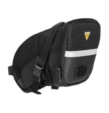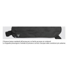 Borsello sottosella aerodinamico per camere d'aria, utensili e altri accessori. Montaggio/smontaggio rapido grazie al nostro innovativo sistema Quick Release Buckle per adattarsi a tutti i telai delle selle.Quattro taglie disponibili per...