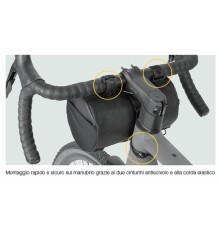 Porta smartphone con velcro, removibile, con borsette laterali. Water resistant, attacchi con velcro per fissaggio al tubo orizzontale. Tipologia : porta smartphone Colore : nero Grado Impermeabilità : water resistant 600d