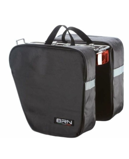 Borse BRN Viaggio Maxi nere posteriori a bisaccia in cordura. La loro capienza totale è di 32 L, le dimensioni 34 x 17 x 30 cm e sono arricchite con bande e loghi riflettenti per donare maggiore visibilità al ciclista.
