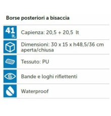 BORSE BRN STYLISH REFLECTIVEBorse BRN Stylish Reflective nere posteriori separate e realizzate in cordura. La loro capacità totale è di 15 L, le dimensioni 30 x 8 x 32 cm e sono entrambe dotate di due bande catarifrangenti poste al centro e nel...