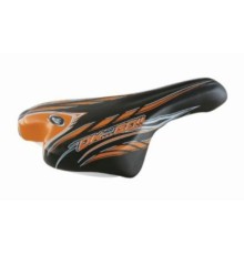 Sella con reggisella diametro 22, imbottitura in PU espanso, scocca in PPE, copertina in pelle sintetica, misure: 210x120 mm, peso 160 gr